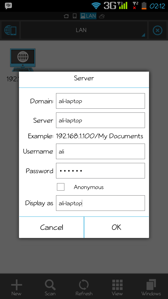 Masukan Server sebagai Computer Name Anda, dan Username itu username yang Anda buat di Samba, kemudian passwordnya sesuai dengan password yg awalnya tadi Anda buat juga di Samba. Klik OK, jika sudah benar maka ES File Maneger akan membuat gambar icon komputer seperti berikut: