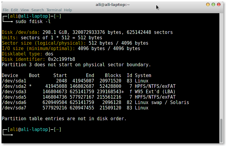 Ingat Untuk sdX mengartikan bahwa X adalah nomor partisi Anda, untuk itu Anda harus tahu dimana letak partisi Linux Anda, jika Anda tidak tau atau lupa Anda bisa lihat dengan fdisk, caranya: