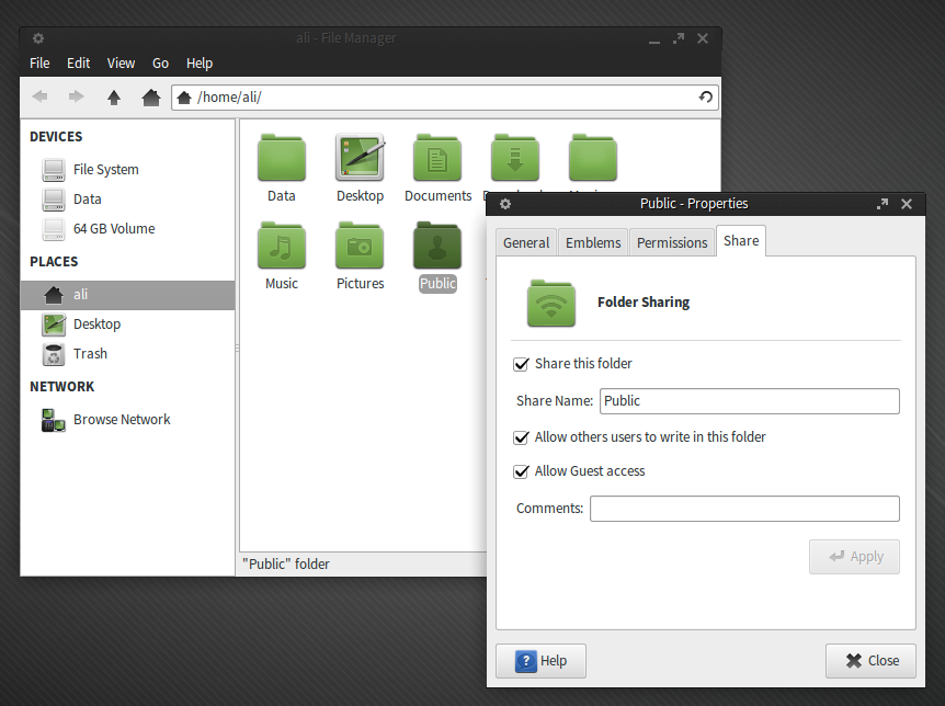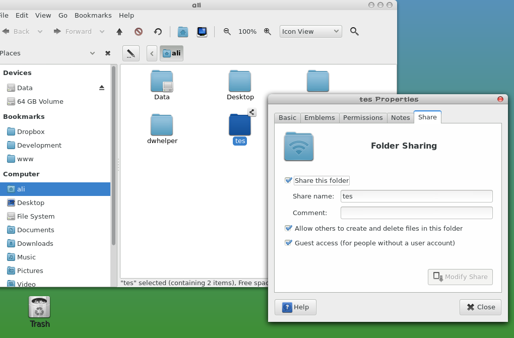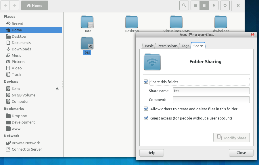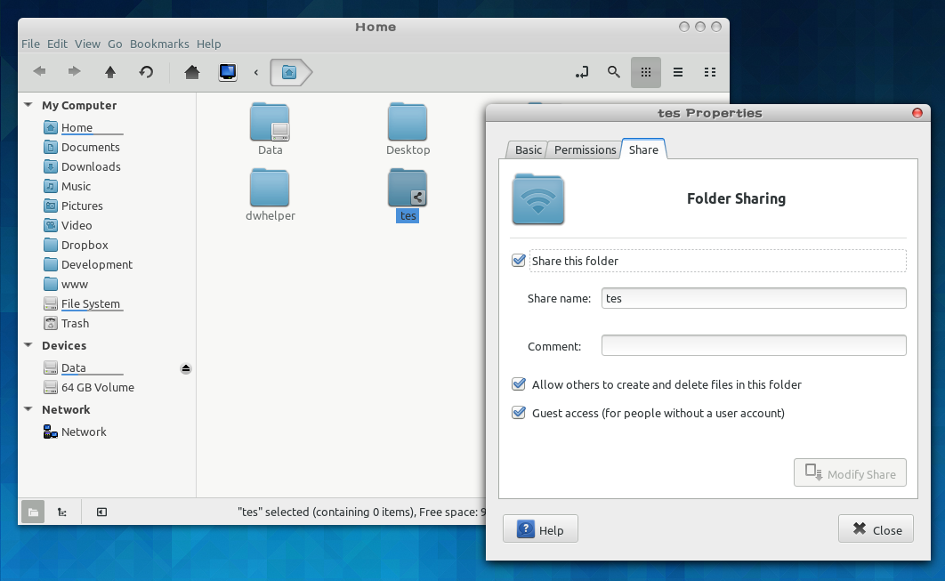 Kemudian Agar setiap Folder terdapat tab Share, layaknya Explorer pada Windows, Anda dapat menginstall aplikasinya di sesuaikan dengan File Manager yang Anda pakai.