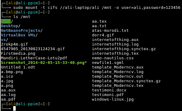 Jika sudah selesai Anda bisa mount dari terminal dengan cara berikut: