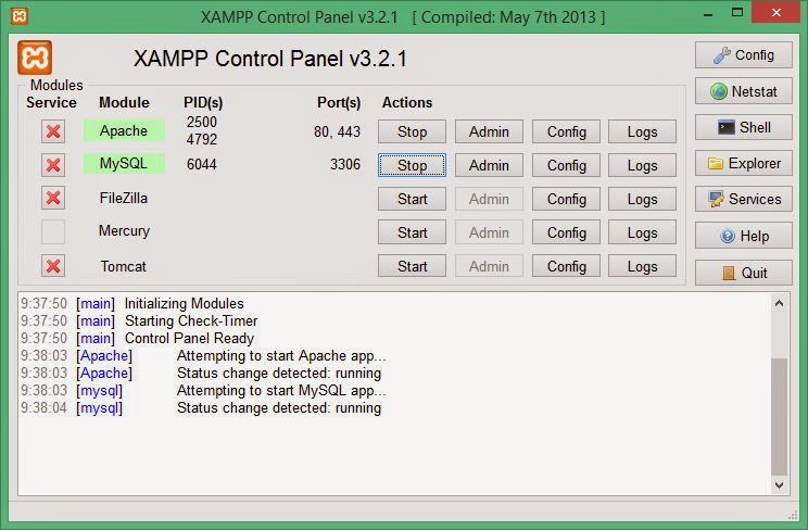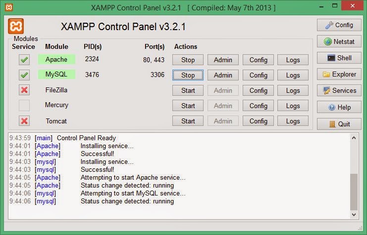 Jika sudah selesai jalankan XAMPP cukup Apache dan Mysql saja.