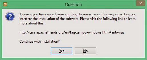 Jika muncul galat (error) abaikan saja, itu hanya peringatan bahwa ada sebagian Antivirus yang memblokir XAMPP Service ketika dijalankan dengan mengklik Yes.