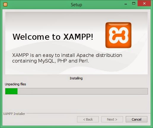 Klik Next lagi dan XAMPP akan segera memulai proses instal di komputer Anda.