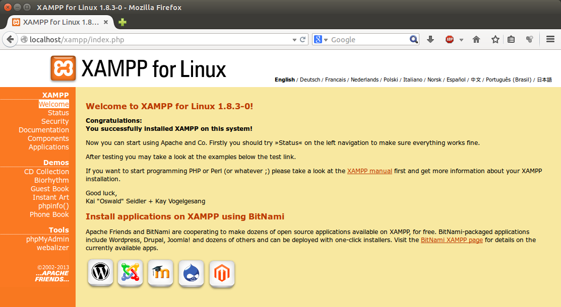 sudo ./xampp-linux-x64-1.8.3-0-installer.run