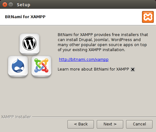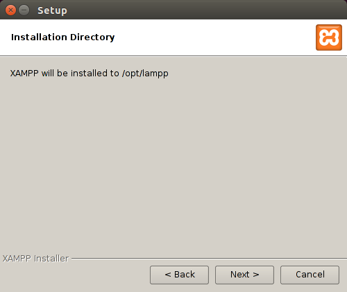 Klik Next, dan langkah selanjutnya XAMPP akan diinstal di /opt/lampp.
