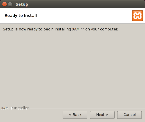 Klik Next lagi dan XAMPP akan siap untuk diinstal.